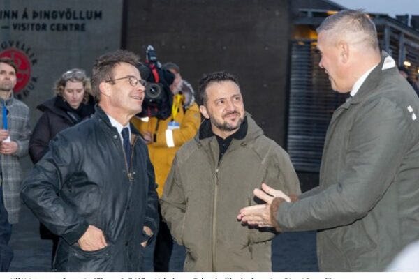 Stríðsherrann Volomidyr Zelinsky var leiddur um Þingvöll af Bjarna Benediktsyni…