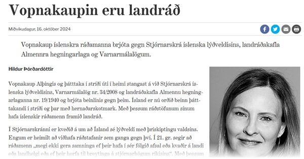 Vopnakaup ríkisstjórnar Íslands eru landráð, segir Hildur Þórðardóttir í grein…