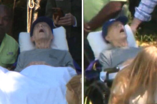 Jimmy Carter, fyrrverandi forseta, var ekið í hjólastól út í…