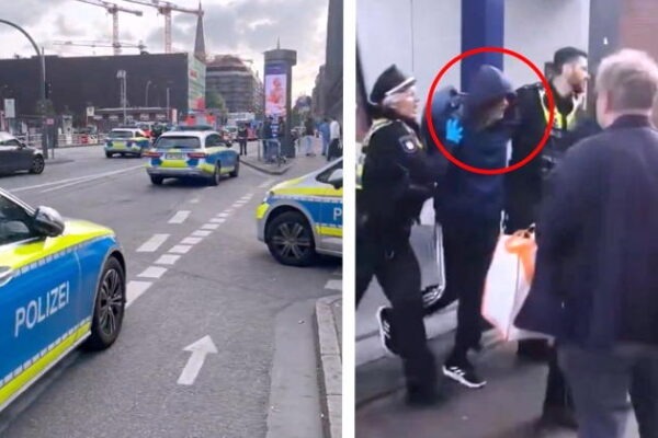 Kona gekk berserkjargang með hníf í miðborg Hamborgar í gær…