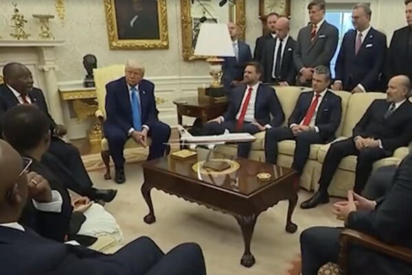 Trump forseti átti tvíhliða fund með Cyril Ramaphosa, forseta Suður-Afríku,…