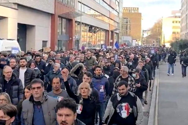 Þúsundir manna söfnuðust saman í Lyon á laugardag til að…