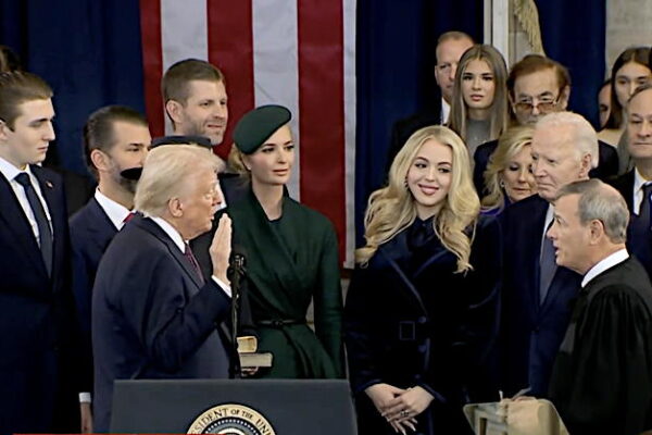 Myndin sýnir þegar Donald Trump sór eið að stjórnarskrá Bandaríkjanna…