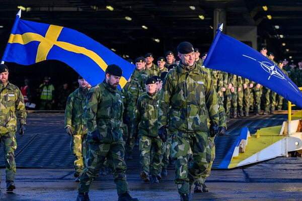 Myndin sýnir sænska hermenn á leiðinni til Lettlands í Nató-vörnum…