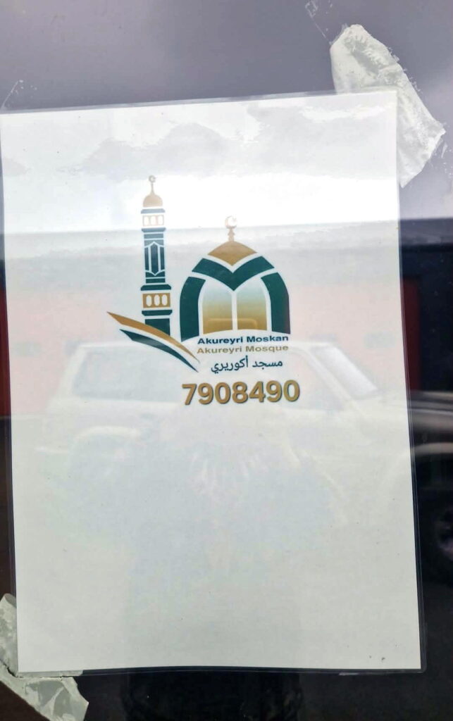 Myndin að neðan sýnir tilkynningu um nýju moskuna á Akureyri: Akureyri Moskan