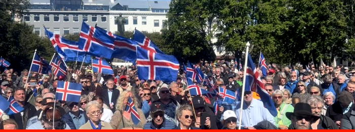 Loksins er eitthvað að gerast, útifundur á Austurvelli til að mótmæla galopnum landamærum. Íslenski fáninn klæðir Austurvöll fallega og aðstandendur segja að lögreglan hafi sagt að allt að þúsund manns hafi mætt. Á samfélagsmiðlum má sjá myndir og myndskeið af fundinum eins og sjá má hér að neðan. Vonandi verður þessi grasrótarandstaða að sterkri hreyfingu landsmanna til að kasta af sér oki þess helsjúka vókisma, pólitíska rétttrúnaðar, sem tröllríður stjórnmálunum á Íslandi í dag.