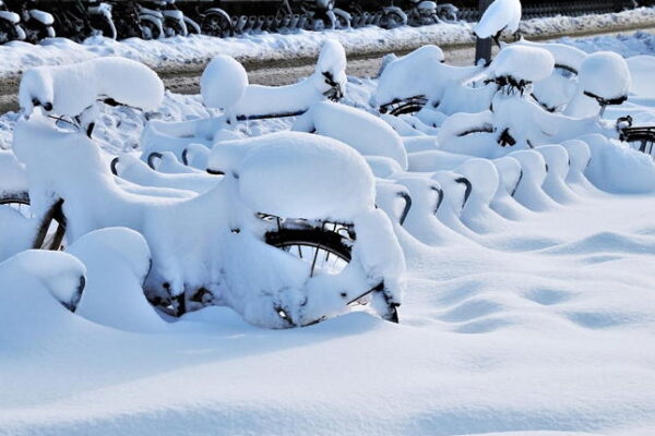 Hjólreiðastæði að vetri til á Norðurlöndum. Samkvæmt eftirlitsskipun ESB fá…