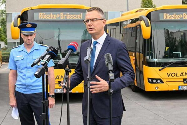 Bence Rétvári, utanríkisráðherra Ungverjalands á blaðamannafundi fyrir helgi. (Mynd skjáskot…