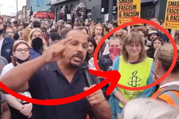 Kona frá alþjóðlegu mannréttindasamtökunum Amnesty klappar saman höndum í hrifningu,…
