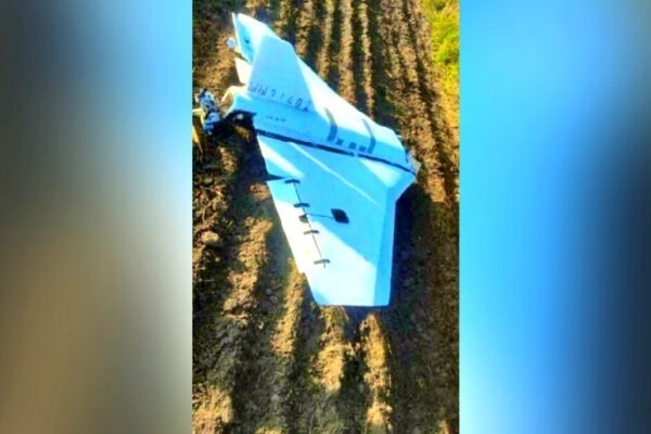 Myndin sýnir rússneskan gerberadróna sem sagður er hafa verið skotinn…