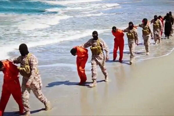 (Myndin sýnir vígamenn ISIS leiða fórnarlömb til slátrunar en þeirra…