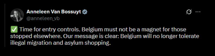 Belgía endurspeglar aðgerðir Hollands og Þýskalands, sem hluta af samræmdum aðgerðum gegn ólöglegum innflytjendum um alla álfuna. Í yfirlýsingu frá belgísku ríkisstjórninni seint á fimmtudag segir: