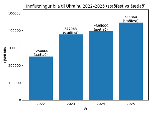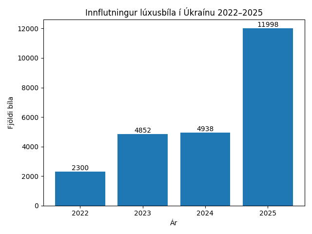Þjóðólfur bað gervigreindina að upplýsa bílasölumál í Úkraínu sér í lagi eftir ár 2022. Gögn benda til mikillar aukningar 2023–2025 og sér í lagi ár 2025 en þá bókstaflega sprakk eftirspurnin, þegar jafn margir lúxusbílar voru fluttir inn eins og samanlagt á árunum 2022-2024. Þá varð einnig mikil aukning í sölu venjulegra bíla ár 2025 sem jókst 17% miðað við árið áður.