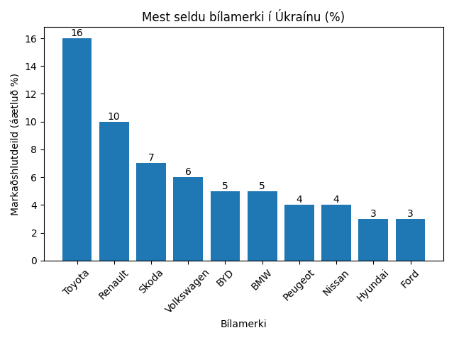 Mest seldu bílamerkin í Úkraínu