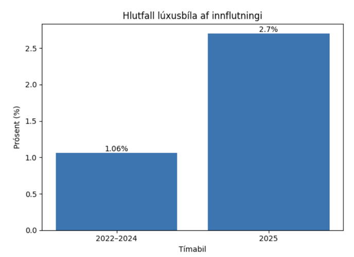 Innflutningur lúxusbíla sem hlutfall af heildarinnflutningi bíla meira en tvöfaldaðist ár 2025