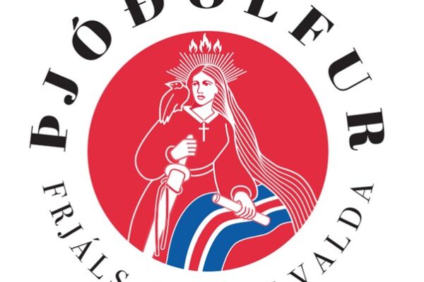 Fjallkona Þjóðólfs ber kross um háls, sér til verndar, þjóð…