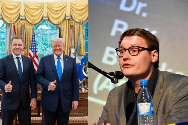 Nawrocki og Trump til vinstri, þýski þingmaðurinn Moritz Körner til…