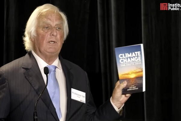 Prófessor Ian Plimer heldur á nýrri bók sinni um loftslagsmálin:…