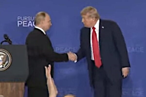 Þetta myndskeið gengur um á samfélagsmiðlum vegna fundar Pútíns og…