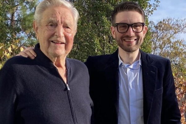 Sorosfeðgar: George Soros t.v. og sonur hans Alex Soros t.h….