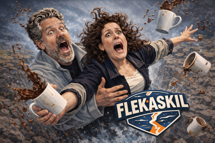 Spillingin í íslenskum stjórnmálum ríður ekki við einteyming. Núna hefur sætabrauðsparið Dagur B. Eggertsson og hin nýja hlaðvarpsmey hans, Þórdís Kolbrún Reykfjörð hist í eldhúsinu heima hjá Degi og séð með glöggum augum sprungu í gólfinu. Þau eru á flekaskilum og ætla að reyna að brúa þessa sprungu með samtali yfir kaffibolla. Það verða erfiðir bollar, þegar flekarnir hreyfast og þau týna fótunum, missa kaffibollana og hrapa beint ofan í sprunguna.