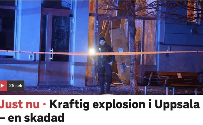 Þjóðólfur vekur athygli á mjög góðu viðtali Atla Steins Guðmundssonar, Morgunblaðinu, við hinn viðkunnanlega Diamant Salihu „Enginn hlustar þar til allir deyja.” Hann tíður gestur í sænska sjónvarpinu til að ræða stríð glæpahópanna í Svíþjóð sem oftar en ekki er stjórnað erlendis frá. Er um harðsvíraða innflutta glæpamenn, eiturlyfjasala og morðingja að ræða sem hafa gjörbreytt sænsku samfélagi á undanförnum tíu árum. Fjölmiðlar greina daglega frá skotárásum og sprengjuódæðum eins og núna SVT til dæmis í morgunsárið, sprengjuódæði við anddyri fjölbýlishúss í Uppsala (sjá mynd).