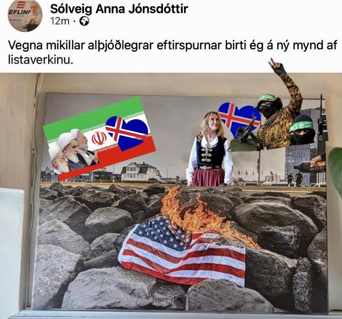 fánann fyrir framan Höfða. “Lista”konan vanrækti hins vegar að sýna ástmegi íslensku
