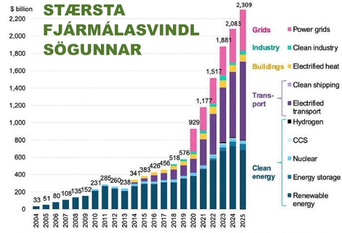 Samkvæmt danska prófessornum Bjorn Lomborg hafa grænu umskiptin kostað heiminn 16 billjónir dollara fram að þessu (trilljónir á ensku). Stephen Moore skrifar um málið í Epoch Times og veltir fyrir sér, hvort loftslagsblekkingin sé ekki „stærsta fjármálasvindl sögunnar?“