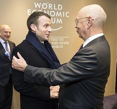 Emmanuel Macron og Klaus Schwab á Alþjóðaefnahagsráðstefnunni í Davos. Mynd: Wikipedia/ Foundations World Economic Forum