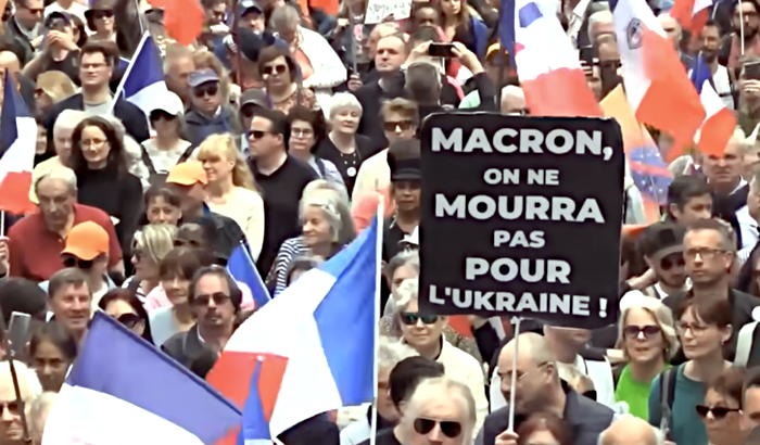 Mótmælendur krefjast friðarviðræðna og að Frakkland sé hlutlaust. Frakkar gefa stríðsæsingarstefnu Macron vísifingurinn og ef hann gerir alvöru úr því að senda franska hermenn til Úkraínu má búast við nýrri öldu mótmæla og jafnvel óeirða sem muni slá til baka á frönsku ríkisstjórnina.