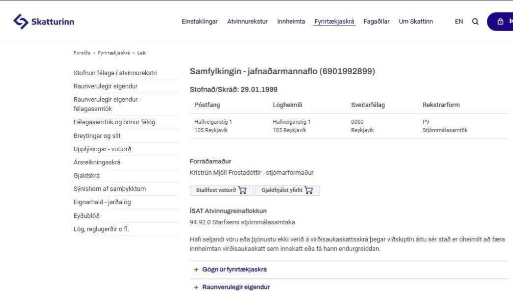 Kristrún Mjöll Frostadóttir er líka skráður stjórnarformaður félags í atvinnurekstri sem ber heitið Samfylkingin jafnaðarmannaflokkur 690199-2899 Hallveigastíg 1, 105 Rvk. Þrjár milljónir urðu 100+ í Kviku gefnar upp sem fjármagnstekjur en hvernig gat hagfræðingurinn vitað? Frostrós hefur skipað Dag Bé til að rannsaka þúsundir dularfullra póstatkvæða sem Eva Bryndís bekkjarsystir úr MR og stórvinkona “fann“ í Reykjavík. Þar verður ekkert að sjá. Frostrós gerði Ölmu að ráðstýru heilbrigðismála til þess að halda loki á kraumandi covid-potti. Stöð 2 og Vísir standa vaktina fyrir Möller-bræður. Ekki þarf að nefna garminn RÚV ávallt öfugu megin við sannleikann. Eva Bédís hefur stýrt fósturvísa ofsóknum á hendur hjónunum Gunnari Árnasyni og Hlédísi Sveinsdóttur. Eva litla krafðist 4ára fangelsis yfir mér fyrir að skrifa um fósturvísamálið þar sem Dagur Bé hefur verið hliðvörður fyrir litlu systur.