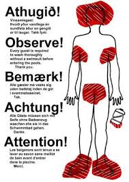 Næsta morgun fer ég í Laugardalslaug, eina af mörgum sundlaugum borgarinnar. Sund er nánast heilagt fyrir Íslendinga og stór hluti menningar þeirra. Reglurnar eru strangar: þú mátt ekki fara í laugina fyrr en þú hefur þvegið þig vandlega. Á veggjunum eru myndir sem sýna hvernig á að þvo handakrika og kynfæri. Hvernig virkar þetta þegar „trans konur“ nota kvennaklefa, velti ég fyrir mér?