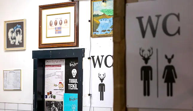 Eftir að hafa útskýrt tilgang heimsóknar minnar tala ég við ungan starfsmann. „Eruð þið með kynjaskipta sameiginlega sturtuaðstöðu?“ spyr ég. „Já,“ svarar hann, „það eru kvennasturtur og karlasturtur.“