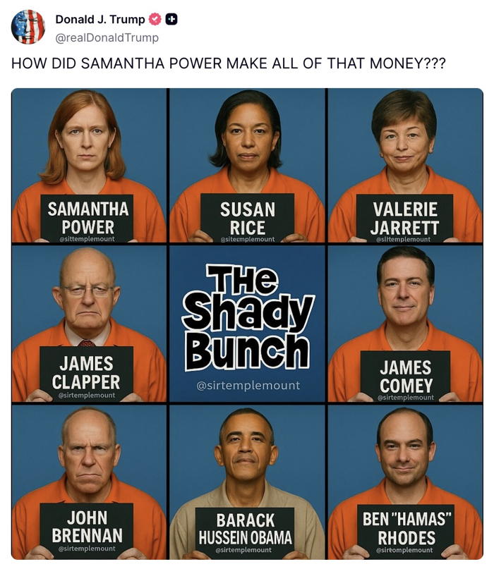 Internet er sjóðheitt eftir að Trump forseti Bandaríkjanna birti grínmyndskeið, gert með gervigreind, á sunnudagskvöld um handtöku FBI á Barack Obama sem einnig sýnir Obama í fangelsi.