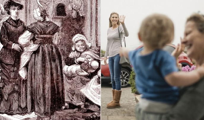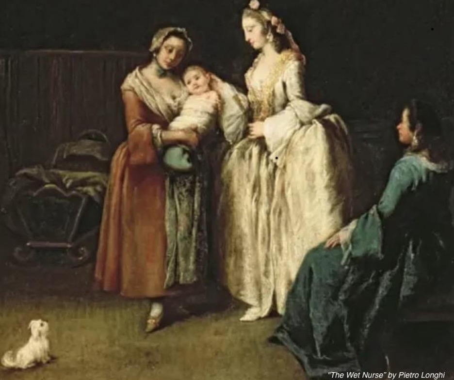 Líkja má væntingum nútímamæðra við væntingar aðalsfrúa í hirðum Tudor aðalsins eða Viktoríu Englandsdrottningar, sem gerðu mun á konu og frú eða „lady.” Konur tilheyrðu bændastéttinni; frúr voru aðallinn. Konur gerðu það sem konur hafa alltaf gert: ólu börn og höfðu þau á brjósti. Börn voru látin vinna við heimilishald og -iðnað um leið og þau gátu gengið. Karlmenn plægðu akra og unnu í smiðju, konur tóku afurðir þeirra vinnu og breyttu þeim í mat og heimilishluti. Frúr höfðu aldrei börn á brjósti – nú er brjóstagjöf hástéttarvalkosturinn; viðhorfið til útvistunar umönnunar barna er hið sama. Þegar aðalsfrú fæddi hafði kona (“wet nurse”) þegar verið ráðin til brjóstagjafar. Aðalsfrúr vönduðu til þeirra ráðninga, rétt eins eins og nútímakonur áður en þær ráða barnfóstrur. Aðalsbörn vörðu nær allri sinni bernsku með barnfóstrum og einkakennurum. Foreldrarnir komu í stuttar heimsóknir en höfðu ekki viðvarandi daglegt samband við börnin sín eins og „venjulegt” fólk gerði og við vitum að er nauðsynlegt fyrir heilbrigðan þroska barna.