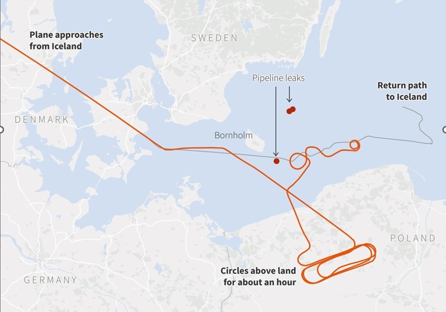 Þessar upplýsingar benda til aðildar Íslands að mesta hryðjuverki og mengunaratviki í sögu Evrópu þegar bandarískar og norskar sérsveitir gerðu árás á þýsku þjóðina. Tveir skjálftar komu fram á mælum um nóttina; kl. 02:03 og miklu mun öflugri kl. 07:04. Sex af átta sprengjum plantað á Nord Stream sprungu. Þrjár af fjórum gasleiðslum eyðilögðust. Það þurfti tvö aðflug yfir Nord Stream til að ljúka verkinu. Bauju var varpað í sjóinn með Raytheon sónar, nokkurs konar byssugikkur.