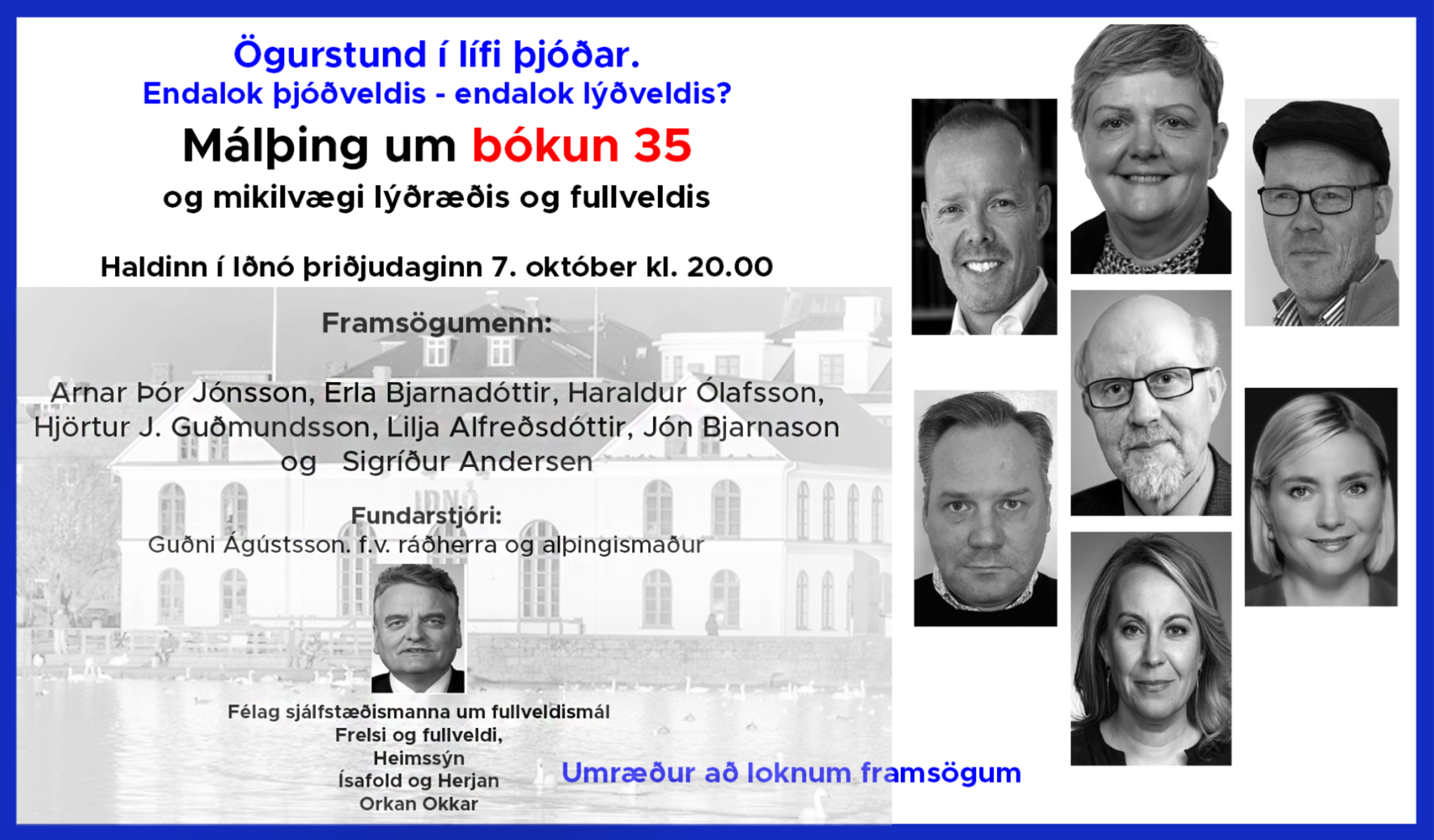 Núna á þriðjudaginn 7. október kl. 20.00 verður haldið málþing í Iðnó klukkan 20.00. Framsögumenn eru Arnar Þór Jónsson, Erla Bjarnadóttir, Haraldur Ólafsson, Hjörtur J. Guðmundsson, Lilja Alfreðsdóttir, Jón Bjarnason og Sigríður Andersen.