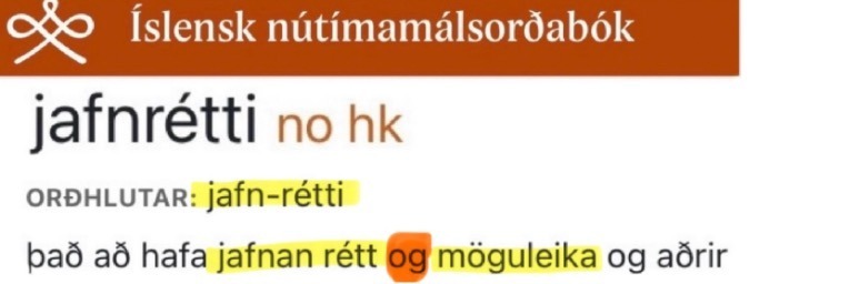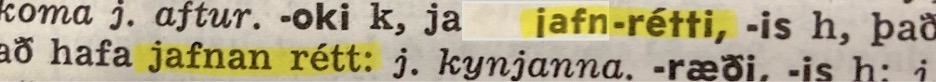 „jafnrétti”: „það að hafa jafnan rétt.”