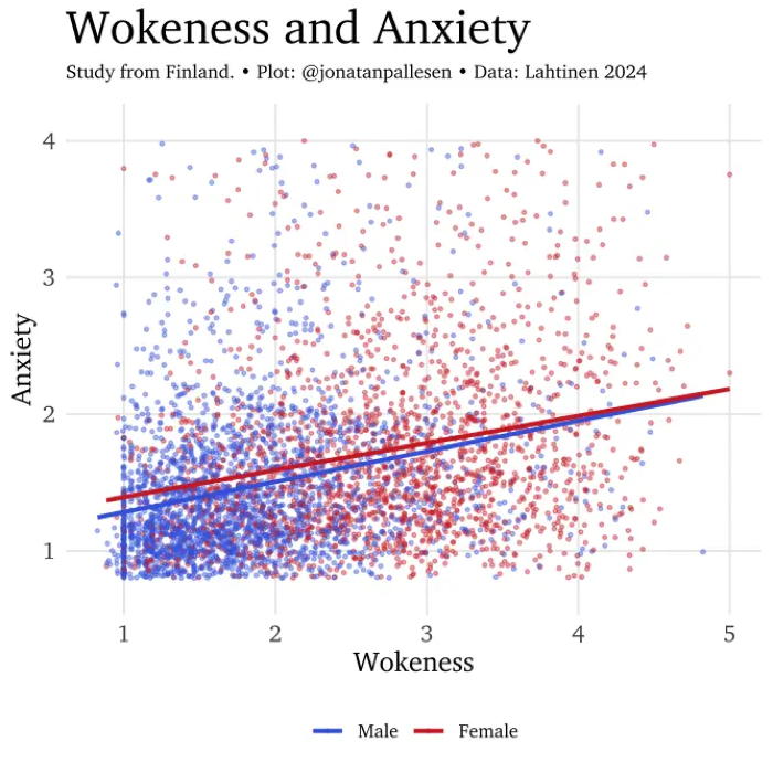 Í tveimur miklum finnskum rannsóknum voru algeng viðhorf til „félagslegs réttlætis“ könnuð hjá mismunandi þjóðfélagshópum. Einnig var félagslegt réttlæti skoðað í tengslum við vellíðan fólks: kvíða, þunglyndi og hamingju. Það sýndi sig að konur eru helmingi „vókaðri“ en karlar.