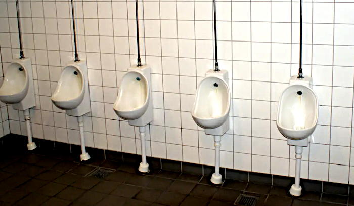 „En afleiðingin er sú, að menn nota ekki pissurennurnar mitt á meðal kvenfólks. Og ekki lítur út fyrir að konurnar vilji nota þær heldur. Í staðinn fara allir í biðröð við básana og gríðarlega langar biðraðir myndast.”