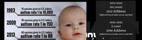 Allar tölur streyma til Dýrafjarðar. Árið 1983 var einhverfa í einu af hverju tíu þúsund börnum; einu af hverjum 150 börnum árið 2008; einu af hverjum 88 árið 2013; einu af hverju 36 árið 2023. Pfizer fór fram á 75 ára mRNA leynd í covid, spyrjið af hverju? Á fimmtíu árum 1970-2020 fengu 1.312 íþróttamenn hjartaáfall og létust; 26 á ári. Á tveimur árum 2021-22 fengu 1.598 íþróttamenn hjartaáfall og létust; 799 á ári. Spyrjið af hverju dó allt þetta unga fólk? Um helgina missti 22 ára liðsfélagi Alberts Guðmundssonar hjá Firoentina meðvitund. Öllum var mjög brugðið.