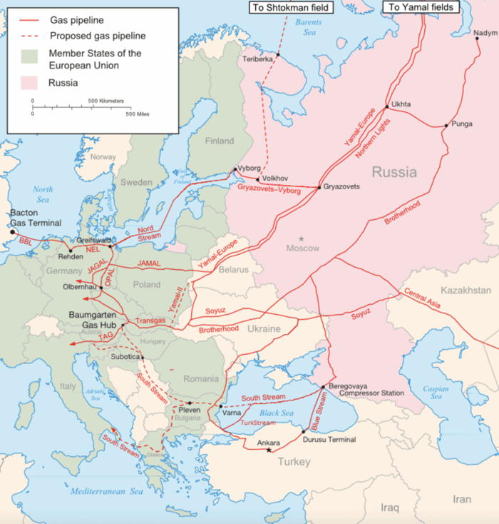 Ungverjaland er háð rússneskri olíu og gasi í gegnum gasleiðslur sínar vegna þess að landið er án hafna og hefur minni flutningamöguleika vegna þess. Tölur frá Alþjóðagjaldeyrissjóðnum sýna að Ungverjaland var háð Rússlandi fyrir 74% af gasi og 86% af olíu árið 2024.