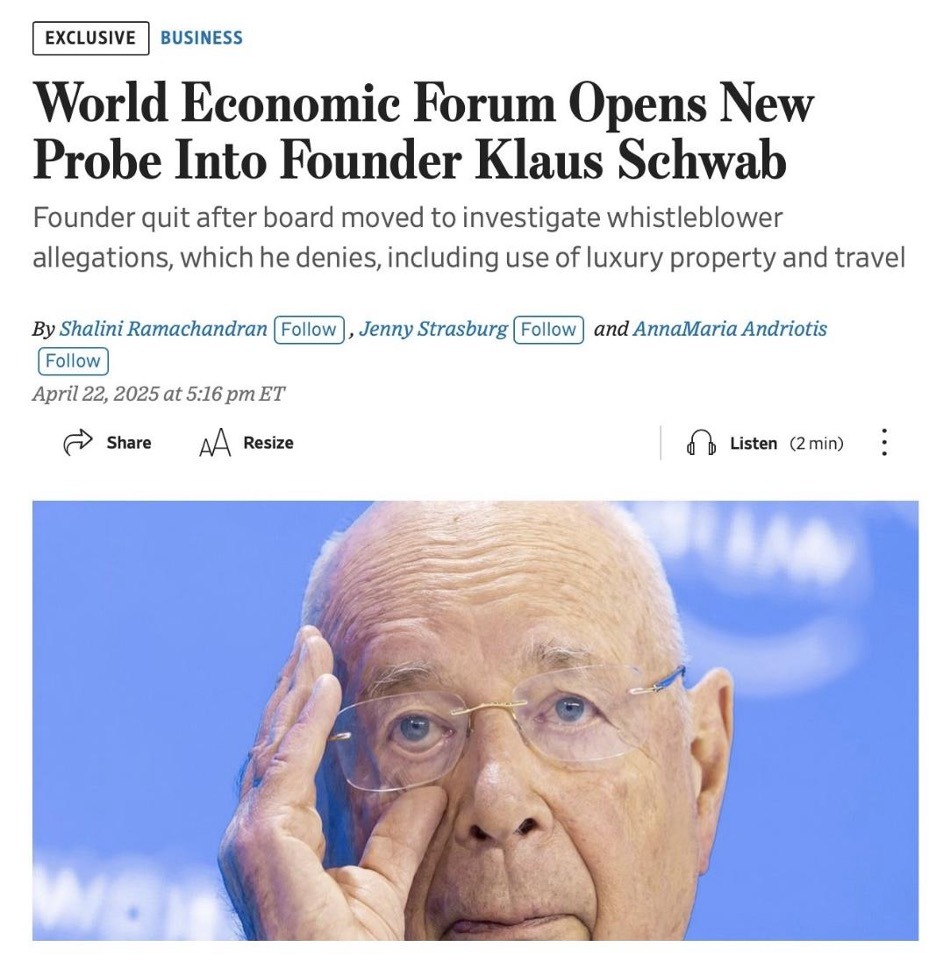 Rannsóknarblaðamaðurinn Jordan Schachtel skrifaði eftirfarandi grein á Substack 23. apríl s.l. um málefni Alþjóðaefnahagsráðsins sem hefur verið aðal driffjöðrin á bak við samruna alþjóðastofnana og fjárjöfra sem í sameiningu valta yfir lýðræðið og fullvalda þjóðir (lausleg þýðing).